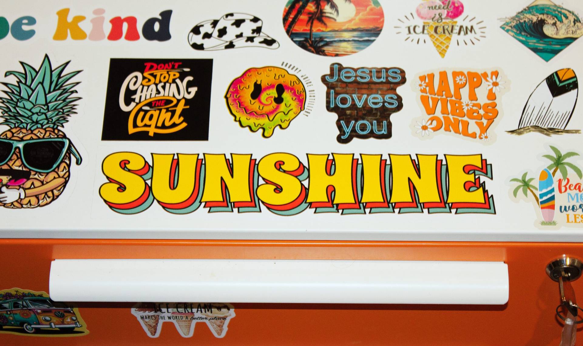 Not the normal sticker. A sticker that not only kids will enjoy but also adults. Being durable and water resistant allow these stickers to be stuck on virtually anything indoors or outdoors, and can go anywhere you go.